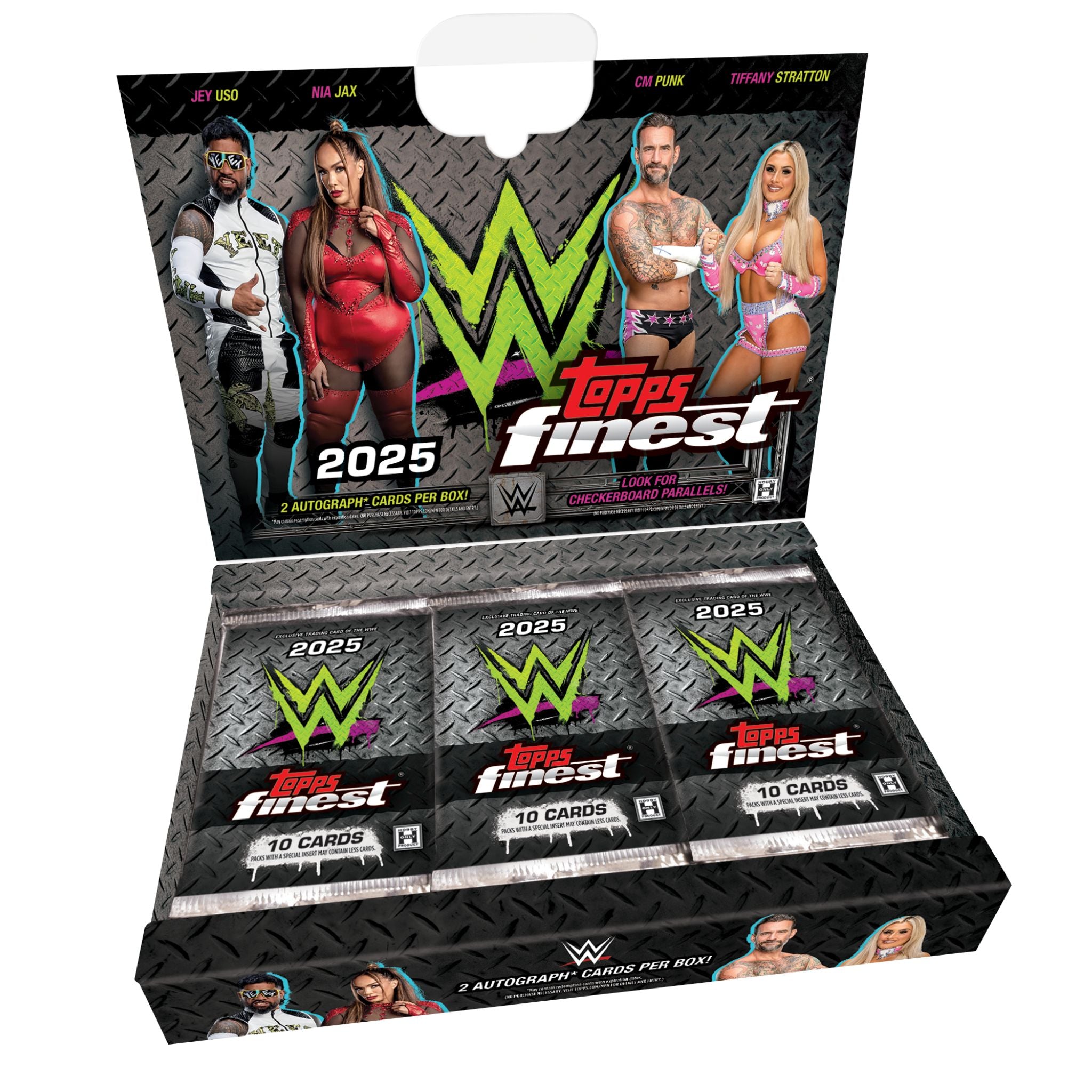 2025 Topps Finest WWE is back and bigger than ever, bringing a stacked lineup of today’s top Superstars, legends of the ring, and fan-favorite inserts. Each box offers collectors a thrilling break experience with two autographs, a wide range of base and parallel cards, and rare refractors.